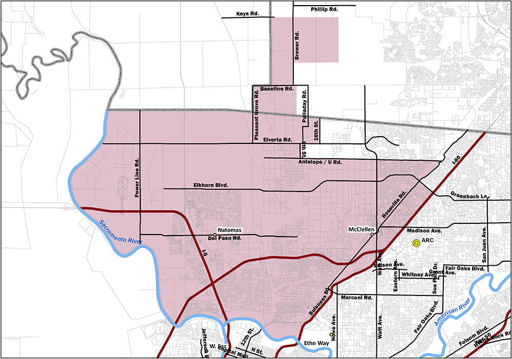 Area 1 encompasses the northwest part of Sacramento County, including Del Paso Heights, McClellan Air Force Base, North Highlands, Natomas, and Rio Linda.